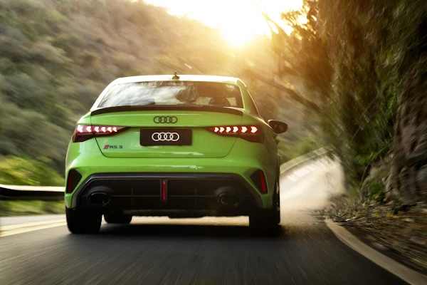 A alma do RS 3 continua sendo o lendário motor 2.5 TFSI de cinco cilindros, agora entregando 400 cv de potência e 500 Nm de torque. Acoplado à rapidíssima transmissão S tronic de sete marchas e à tração integral quattro, o sedã dispara como um foguete: